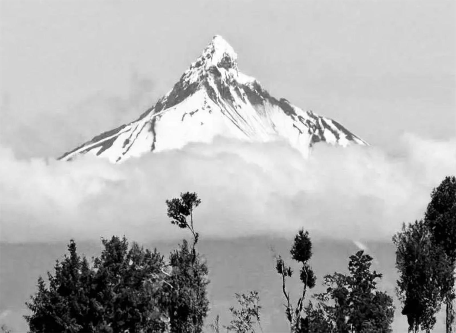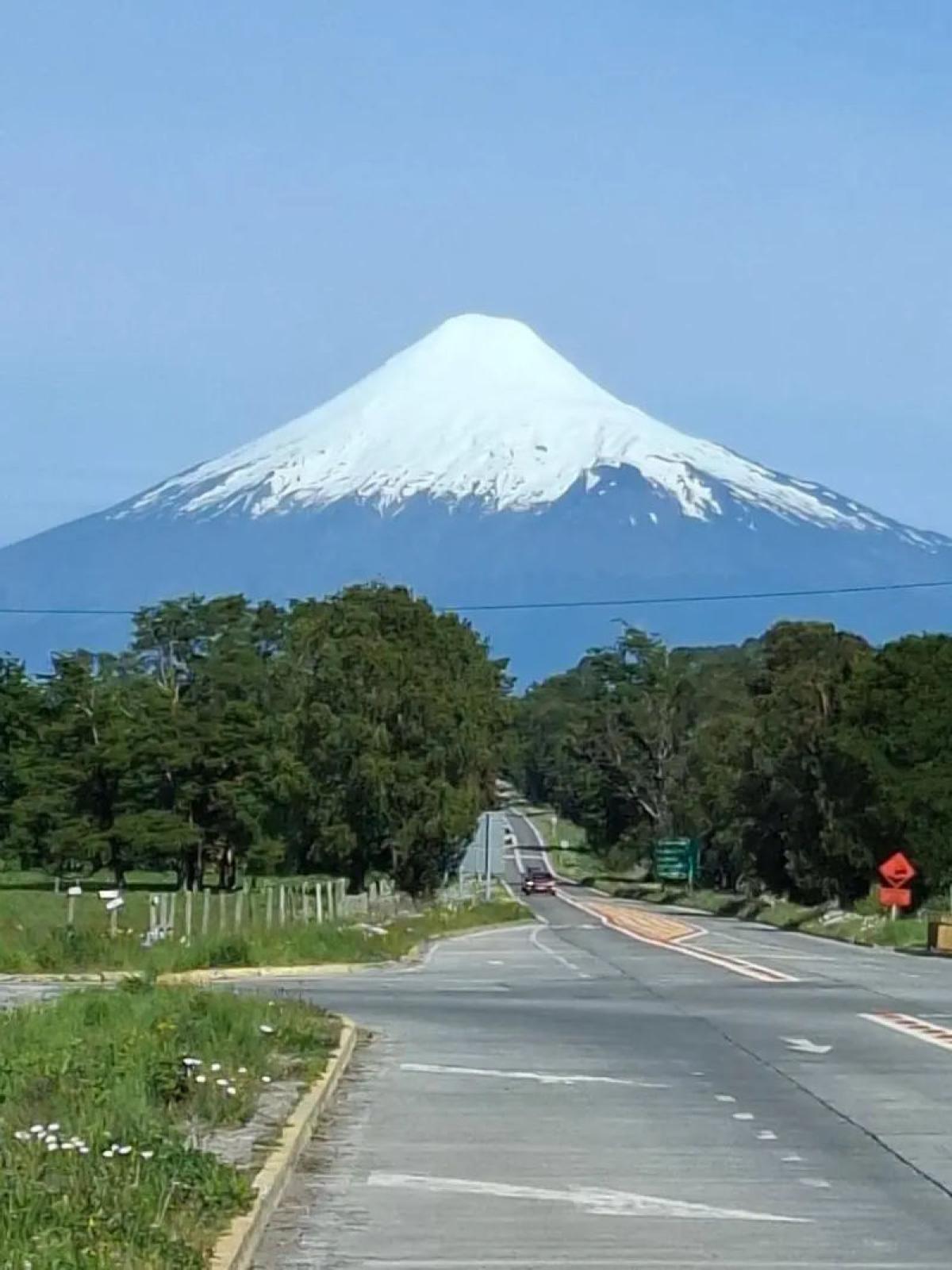 Di fronte il vulcano Osorno si fa strada nella foschia.