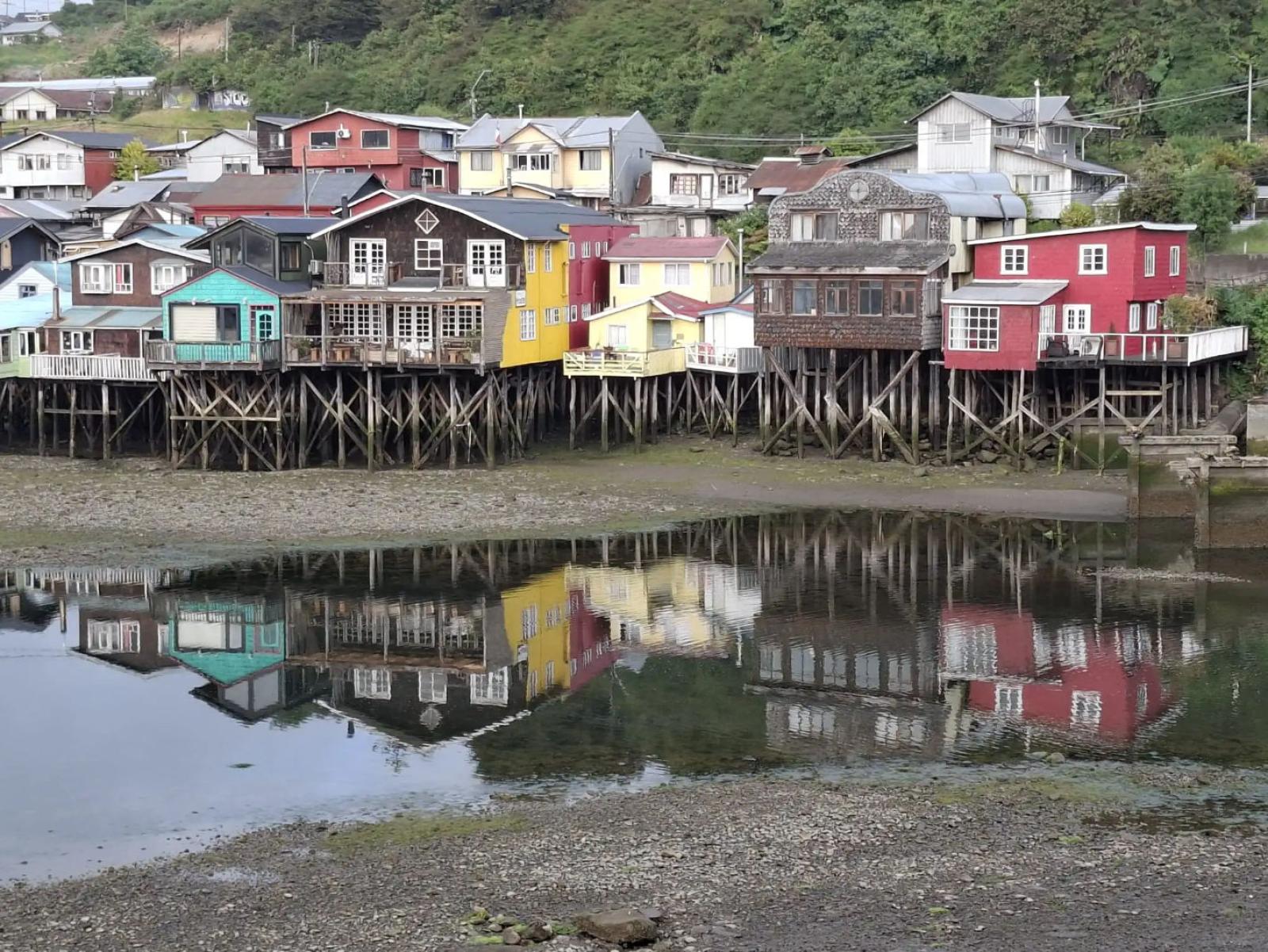 L’isola ha un paesaggio dolce, di prati, bestiame al pascolo e piccole fattorie. L’Oceano Pacifico la lambisce, scavando canali che si insinuano nella costa. Andiamo alla ricerca delle chiese lignee Patrimonio Unesco. Cristi lignei e madonne in abiti di stoffa e monili adornano i semplici luoghi di culto. A Castro le case palafitta, tinteggiate di colori vivaci, restano sospese nel vuoto creato dalla bassa marea. Le barche sono adagiate sulla sabbia in attesa dell’onda.