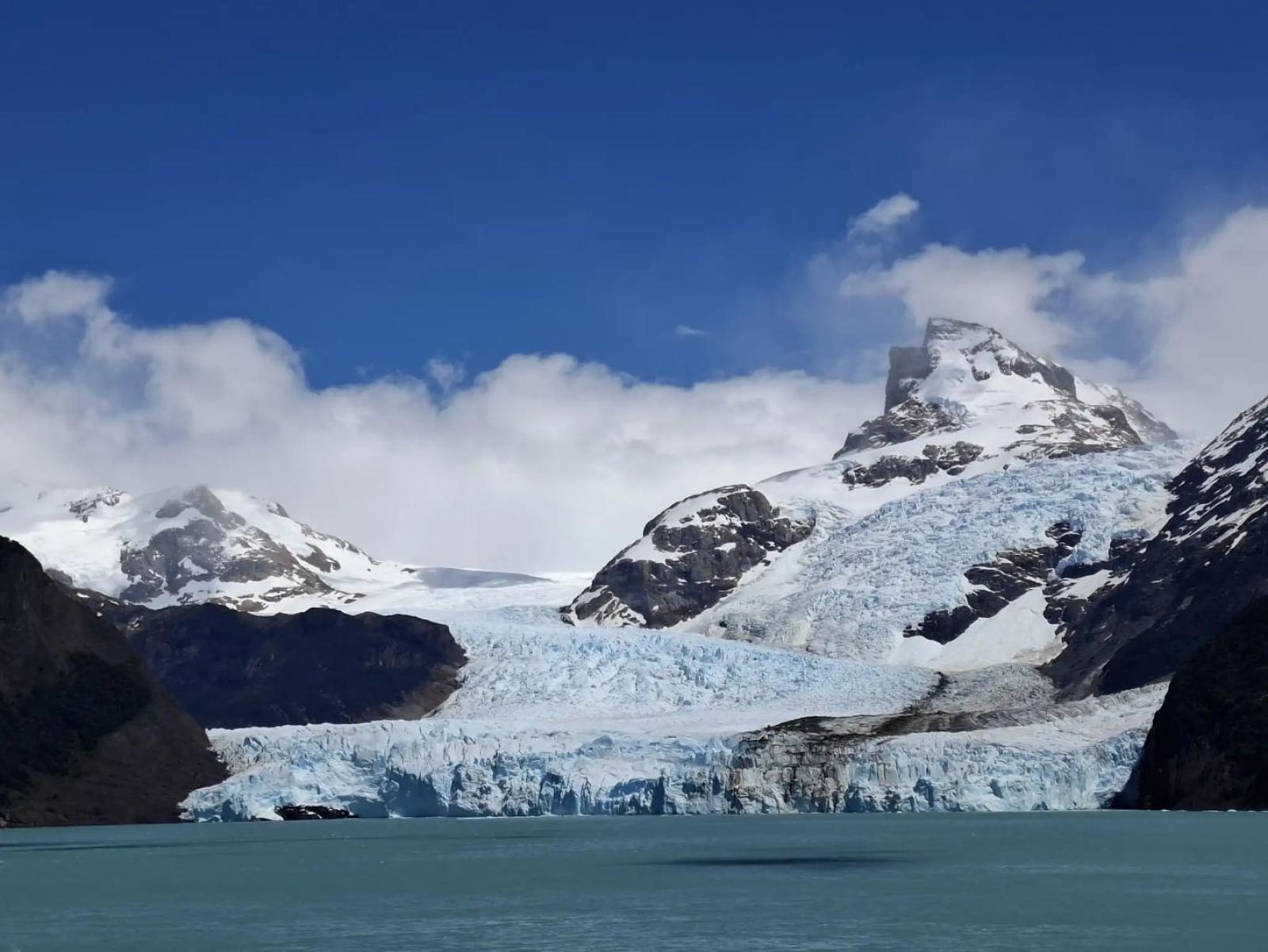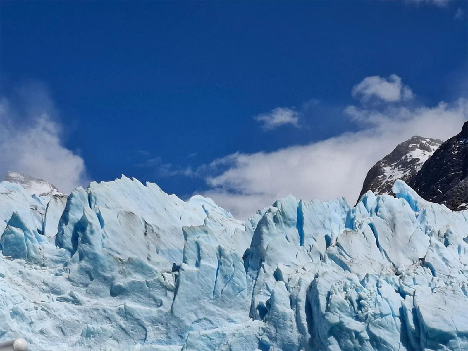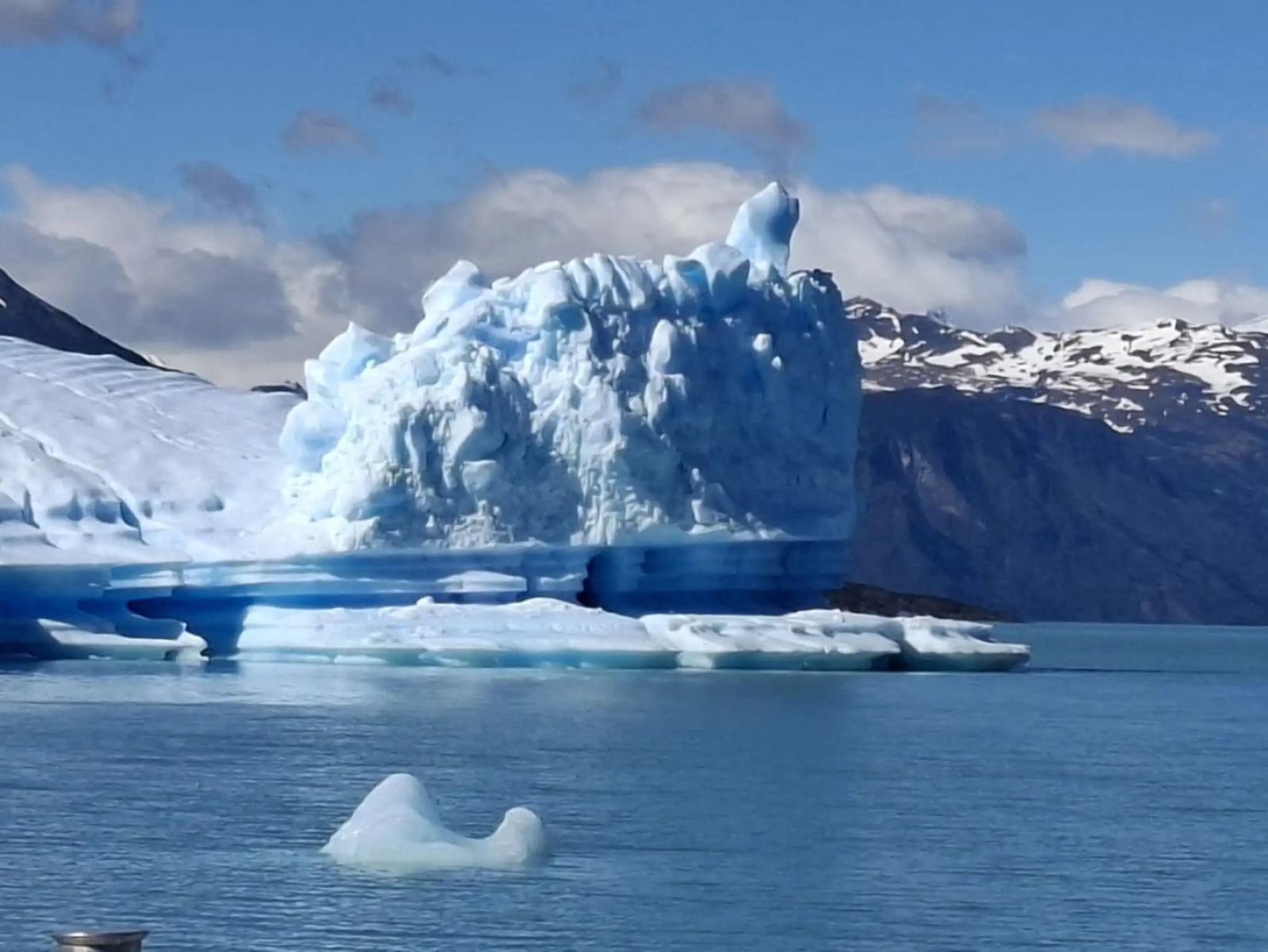 Ci imbarchiamo la mattina per un’escursione sul lago, che ci permetterà di avvicinarci ai ghiacciai Upsala e Spegazzini, quest’ultimo il più alto all’interno del Parco. Il sole splende, esaltando il contrasto di colori fra il turchese dell’acqua, il bianco del ghiaccio, l’azzurro del cielo. L’aria è trasparente, limpida. Il vento soffia il respiro della natura. Iceberg galleggiano alla deriva e rendono la navigazione avventurosa. Le punte aguzze del fronte del ghiacciaio formano muri di cristallo.