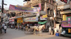 Varanasi è anche la Banares Hindu University, istituzione di eccellenza: studenti selezionati, grandi viali alberati, begli edifici di primo novecento. C'è un museo polveroso pieno di capolavori, bronzi millenari, miniature moghul, due sale straordinarie di artisti europei che hanno vissuto e amato l'India: il russo Roerich, con le sue montagne sacre, la belga Bonner, arrivata qui seguendo un danzatore, e qui morta vecchia e onorata artista filosofa. Qua fece una conferenza l'avvocato Gandhi, tornato dal Sudafrica: oltre l'arco d’ingresso il caos del traffico impossibile: risciò a pedali, risciò a motore (Ape Piaggio ribattezzate), vacche, vecchie Morris Ambassador indistruttibili, motociclette da famiglia: anche moglie e tre figli, lei seduta modestamente di lato col più piccolo sulle ginocchia, la sinistra per reggersi dietro, le destra per tenerlo, mai scomposte, mai fuori equilibrio nelle gimcane. Aria mefitica, clacson continui come fanno i bambini, gli piace il suono, anche se nessuno ascolta, inquinamento da sballo.